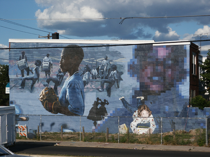 In a Child's World, 30' x 50', acrylic mural, 30th and Reed St., Sponsored by the City of Philadelphia, 2002. |