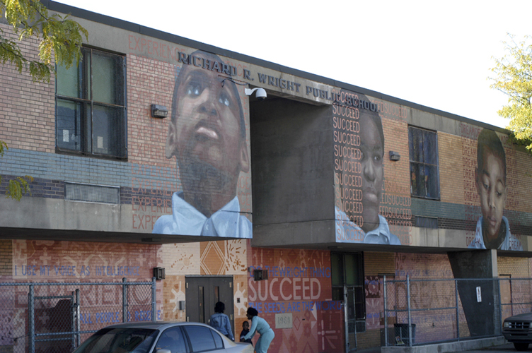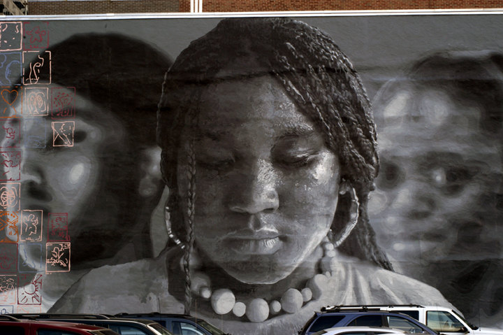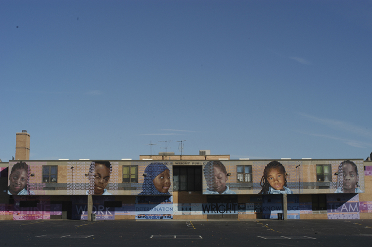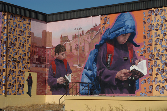 Hear Our Voices, 4 murals each aprox. 25'x 400', acrylic mural on non-woven media, 2800 Dauphin St., Philadelphia, PA, 2005 |